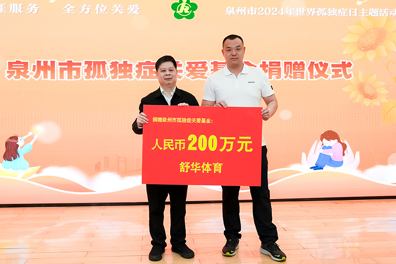 4月2日,第17个“世界孤独症日”主题活动在泉州举行,会上进行了泉州孤独症关爱基金的认捐仪式。我们向泉州市孤独症关爱基金捐赠200万元人民币,用于帮助患有孤独症的儿童得到有效治疗,早日回归到正常的社会生活中。
